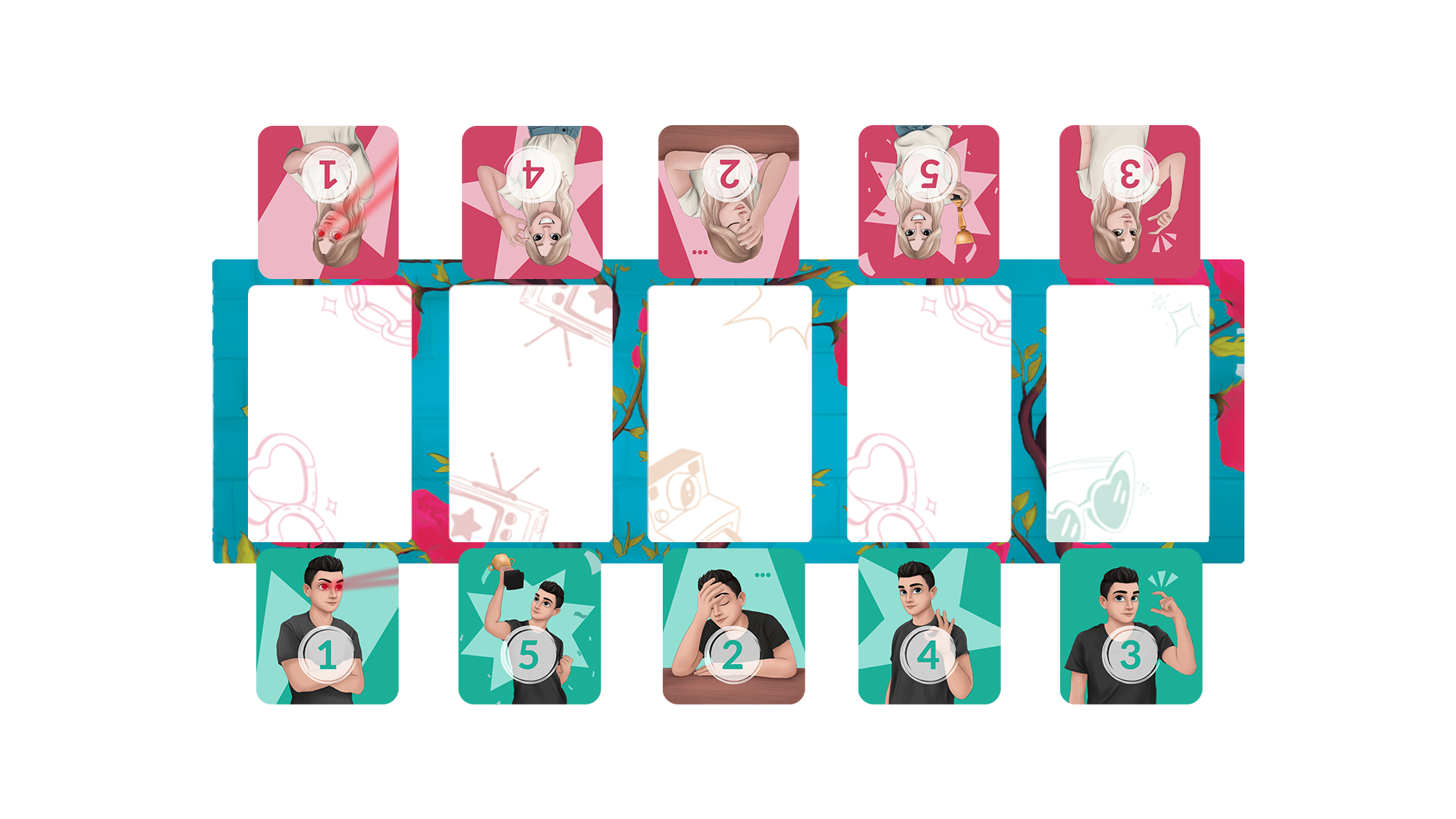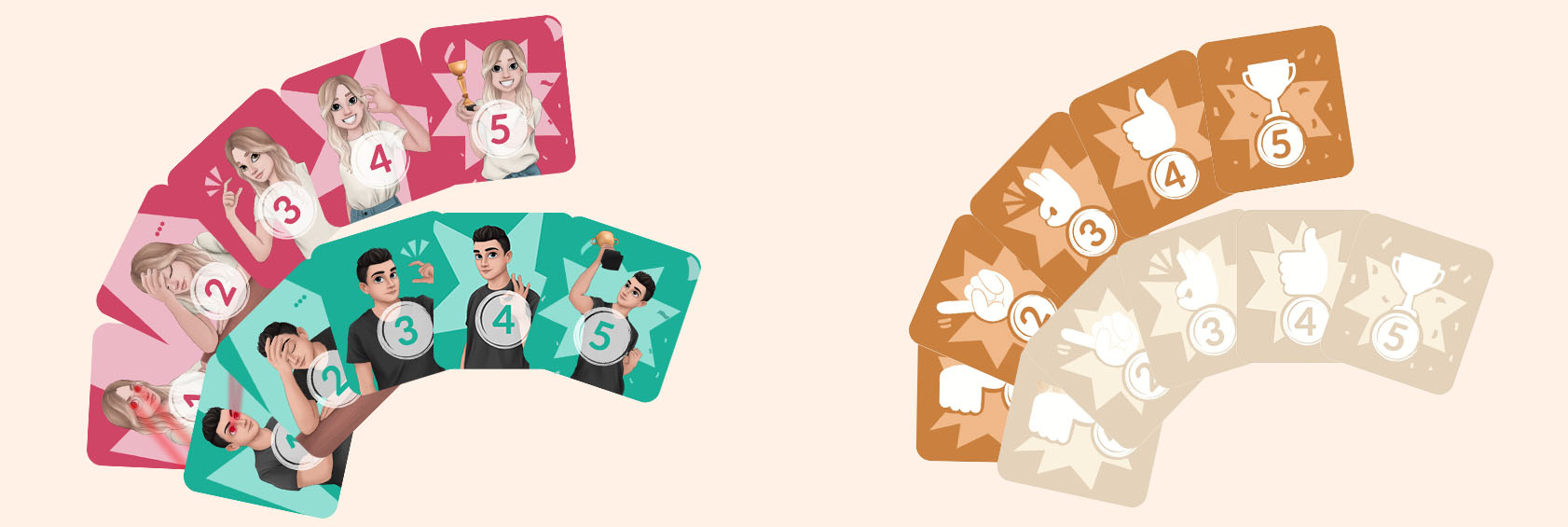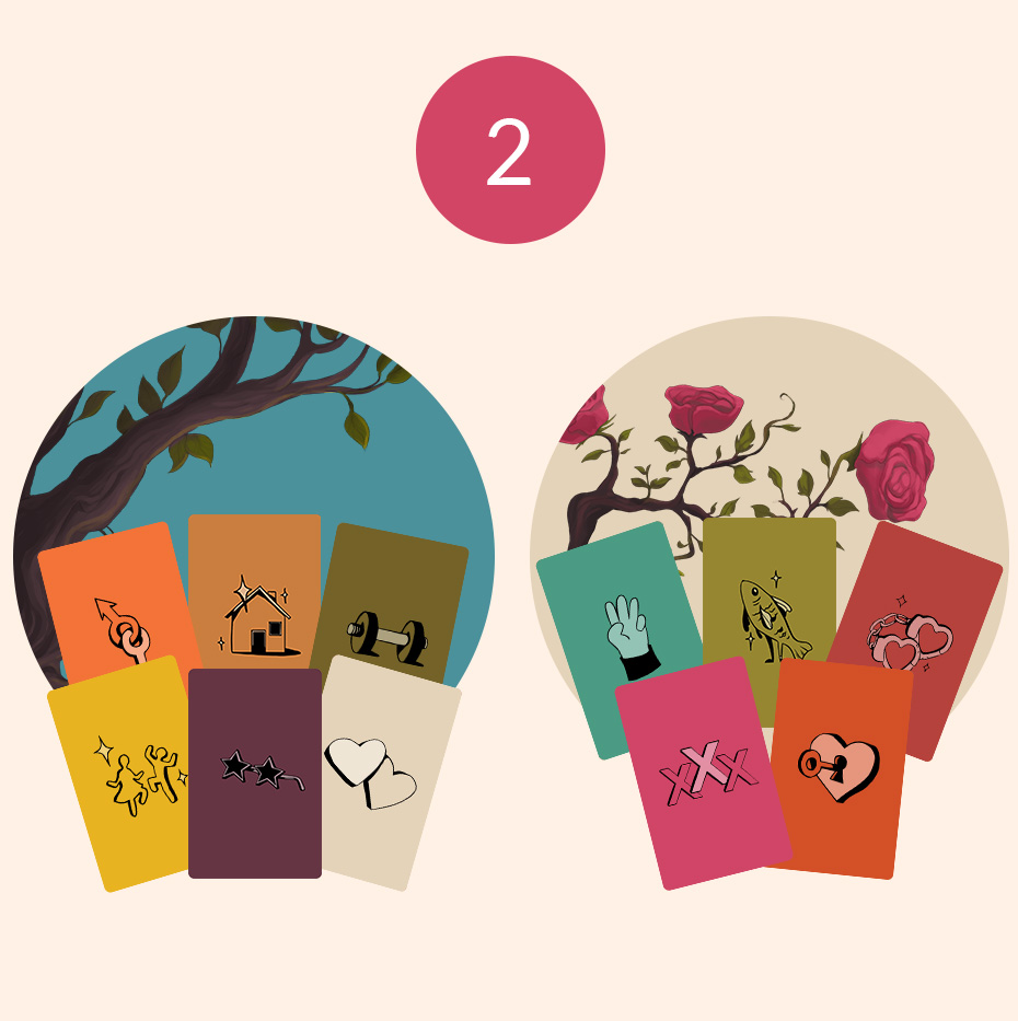 (Τράβα 5 κάρτες-ερωτήσεις, βαθμολόγησέ τες από το 1 έως το 5 ανάλογα με το τι πιστεύεις ότι αρέσει περισσότερο ή λιγότερο στον σύντροφό σου, και ο σύντροφός σου προσπαθεί να μαντέψει πώς τις βαθμολόγησες)